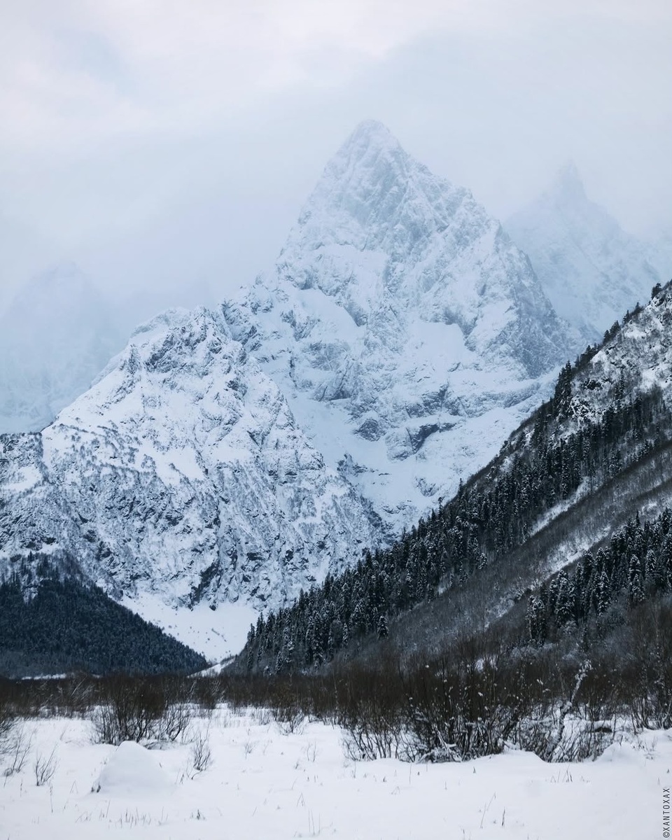 Гоначхирское - одно из самых моих любимых и красивых ущелий Северного Кавказа. Здесь заснеженные леса и горы, сказочные пейзажи и дали. А знаменитое озеро Туманлы-Кель покрыто плотным слоем льда и снега, и, скорее всего, «проснётся» и растает только весной.
