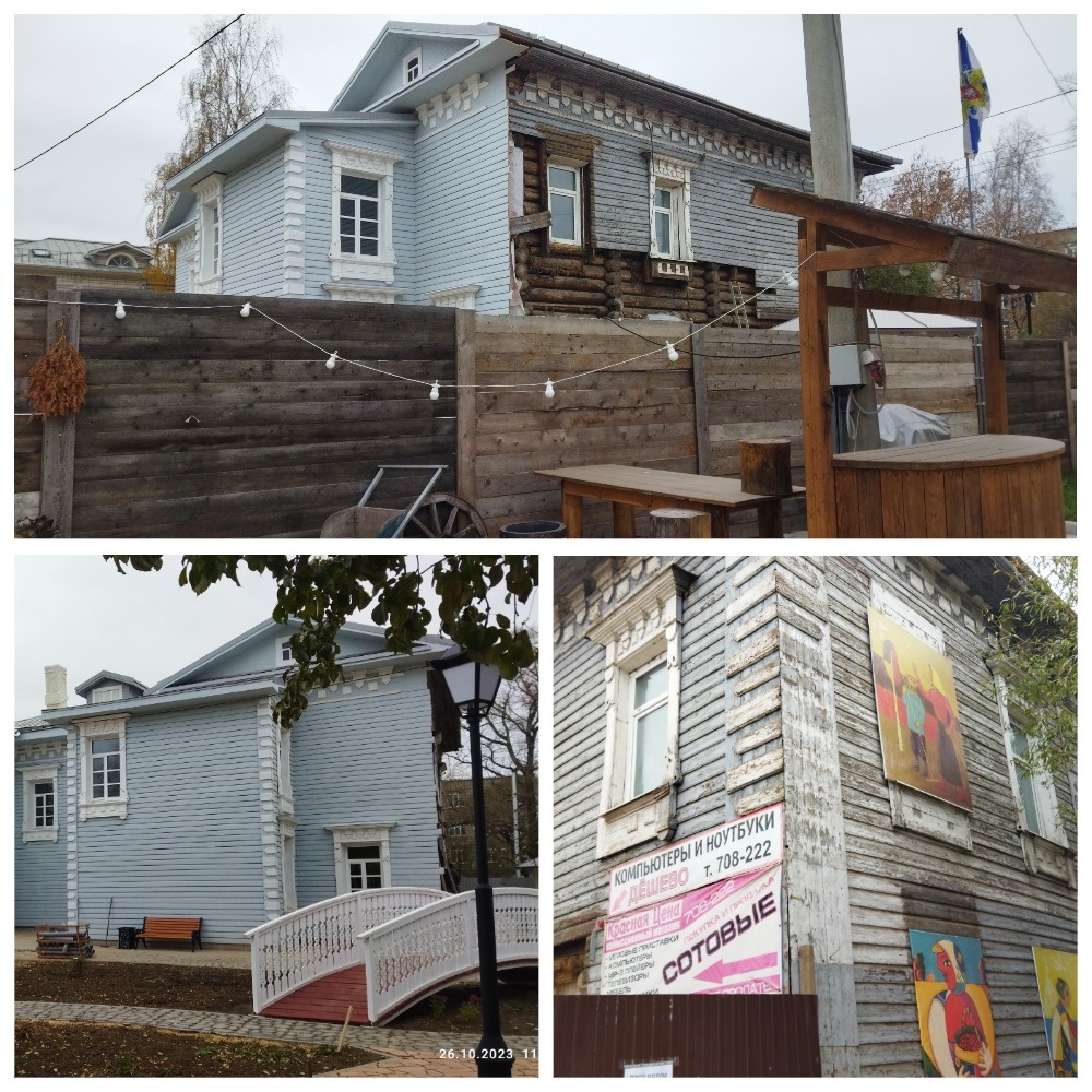 В статье «На культурной карте Вологды скоро появится новый исторический деревянный дом» я рассказывала том, что на ул. Чернышевского, 56 находится дом-музей «Заречный квартал 1840», принадлежащий предпринимателю Виктору Чучину и о том, что соседний дом №54 также ему принадлежащий, активно реставрируется.