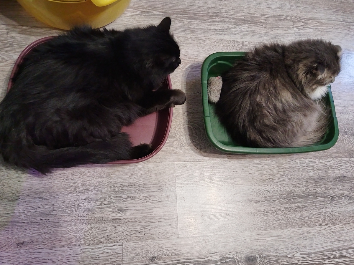 А кошечки устали, и легли спать в тазиках. Кто еще кроме них принесет в наш мир столько красоты?