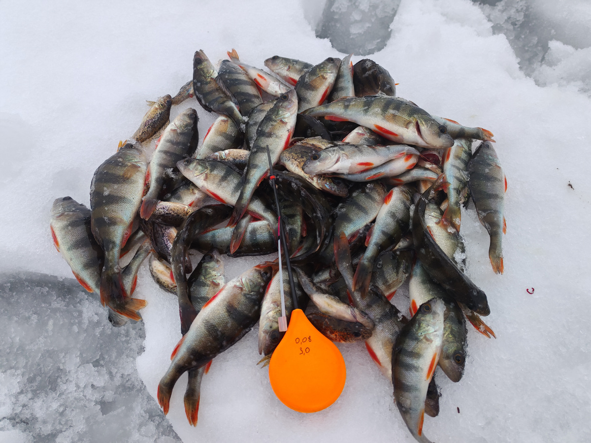 На следующий день тренировались прямо напротив базы. Резко потеплело, с −8 до +2 °C, ветер сменился на юго-восточный, давление росло. Ловили в разных направлениях: Как и в прошлом году, работали крупные по спортивным меркам мормышки — 2,65 и 3,0 мм. Уменьшаться практически не приходилось. Даже ерши размером с мизинец спокойно ели крупную мормышку с двумя мотылями. Самые перспективные глубины — 1,5–2 м — здесь стабильно ловился окунь 10–80 г. Редко залетали бонусы 200+ г. Глубже 3 м начинался ерш. Не сказать, что гнезда, но 10–15 штук