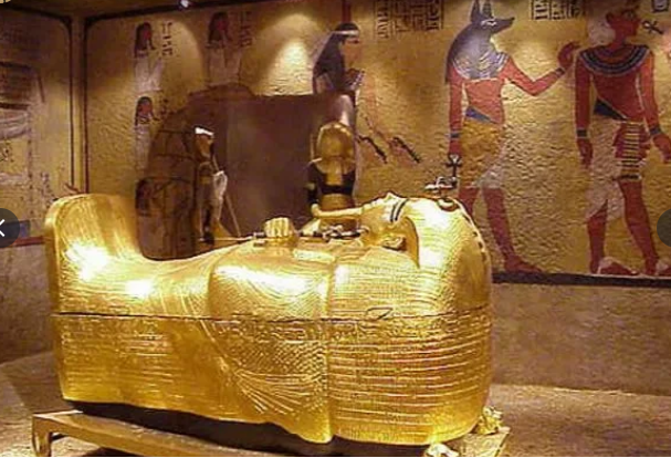 Самым впечатляющим в ней был золотой ковчег, окружённый четырьмя скульптурными изображениями богинь, содержащий канопы с внутренностями фараона согласно погребальному обряду.