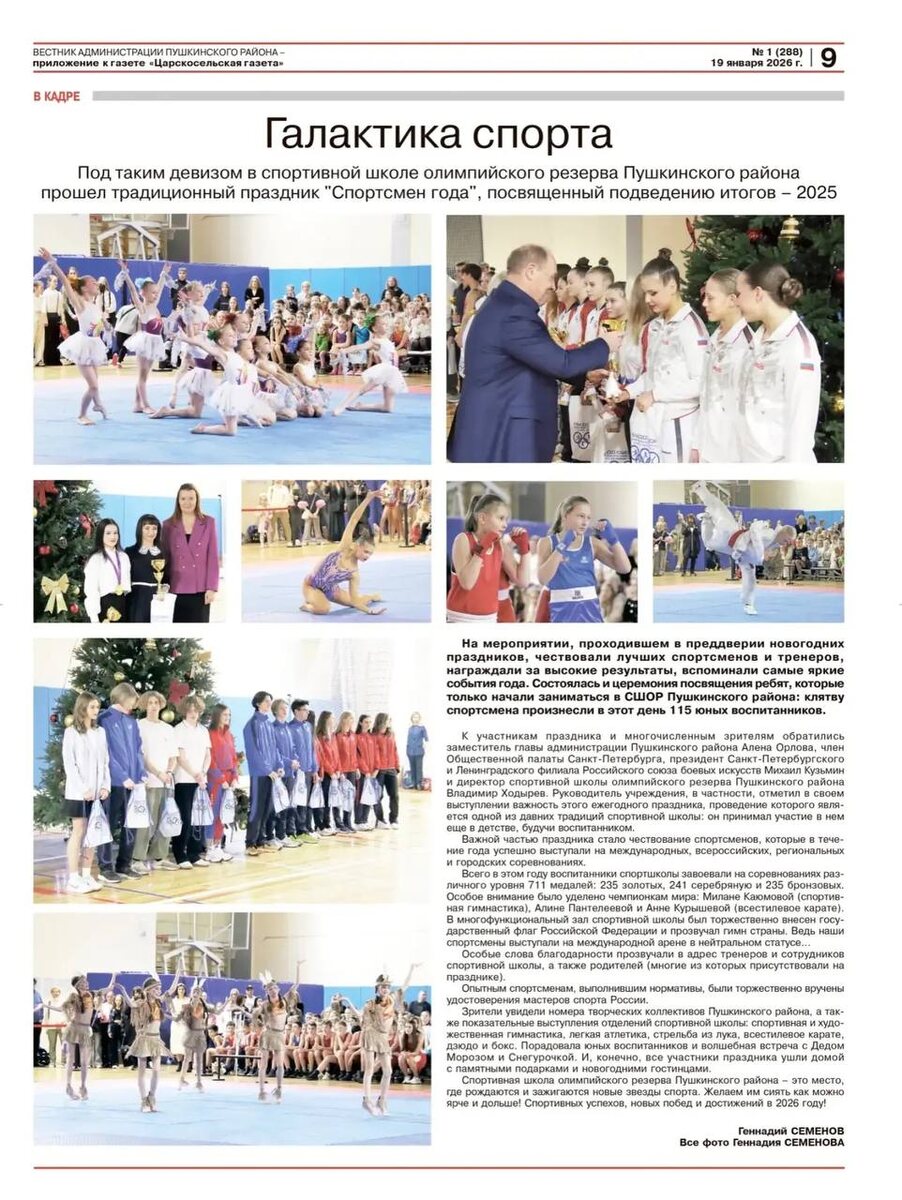 🪐 ✨Наш традиционный спортивный праздник, где каждый год мы подводим итоги, награждаем лучших спортсменов и посвящаем юных на страницах 🗞️«Вестника администрации Пушкинского района». 💬“Спортивная школа олимпийского резерва Пушкинского района - это место, где рождаются и зажигаются новые звезды спорта!“ 🤩 📰Подробнее читайте в свежем выпуске газеты🔝 #ГБУДОСШОРПушкинскогорайонаСанктПетербурга