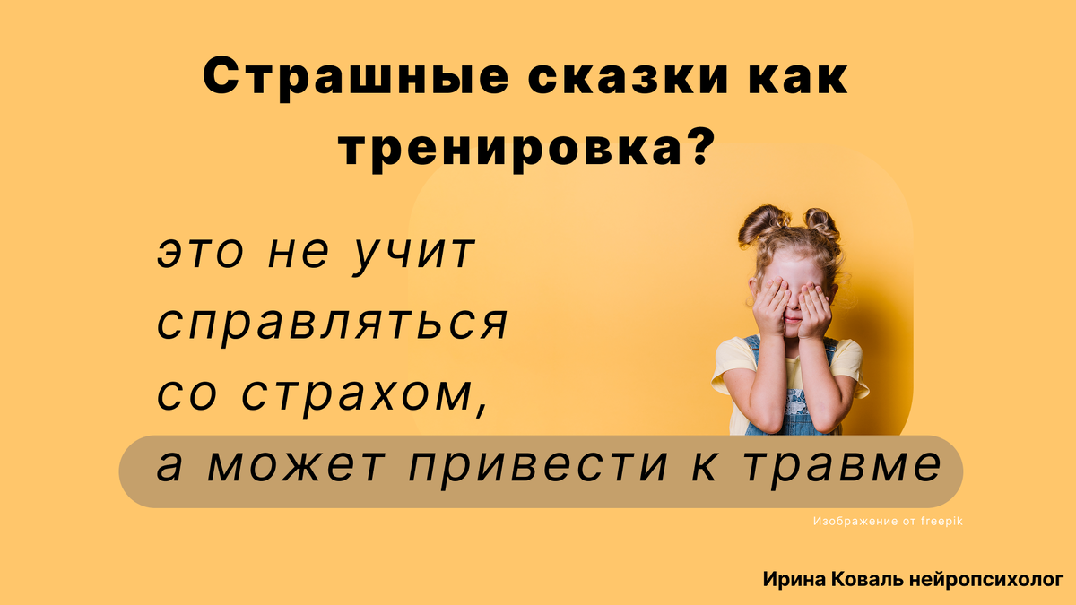 С точки зрения современной нейропсихологии и детской психологии - это опасное заблуждение, которое может нанести реальный вред психическому здоровью ребенка. Принудительное погружение в страх не учит справляться с эмоциями - оно учит беспомощности и может привести к психотравме. Давайте разберемся почему. Когда дошкольник сталкивается с непосильным для него страшным образом (даже если взрослому этот образ кажется безобидным), его мозг не обучается, а испытывает стресс: ➡️Мозг воспринимает угрозу как реальную, потому что критическое мышление, позволяющее отделить вымысел от реальности, еще не сформировано. ➡️Запускается реакция «бей, беги, замри». Амигдала (центр страха) активирует выброс кортизола и адреналина. Это не «тренировка», а полноценный стресс для незрелой нервной системы. ➡️Если взрослый при этом игнорирует его страх - «Не бойся, это же просто сказка!», «Не будь трусом!», не поддерживает и ничего не объясняет, то ребенок остается в одиночестве перед лицом непосильной для его