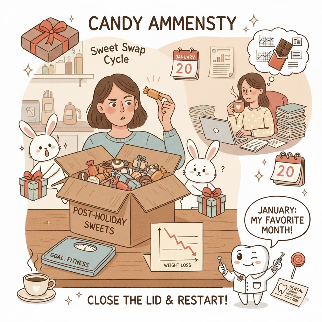 🍬📉 К 20 января в каждом доме наступает критическая точка. Вы осознаете, что детские наборы всё еще не закончились, а ваша решимость начать новую жизнь сталкивается с килограммом шоколада. 🐰🧱 Стадии «сладкого» противостояния 📈 Ревизия. Вы находите в коробке конфеты, которые никто не хотел есть в праздники. Но в суровые будни даже простая ириска кажется шедевром кондитерской мысли. 🍬🧐 Круговорот. Мы пытаемся деликатно передарить оставшиеся наборы друзьям. Но они приходят к вам с такими же коробками. В итоге сахар просто мигрирует из одной квартиры в другую. 🎁🔄 Чайная пауза. Любой перерыв на работе превращается в дегустацию. Вы убеждаете себя, что глюкоза помогает справляться с отчетами, хотя это лишь способ оправдать третью шоколадку за час. ☕️🍫 📢 Стоматологи шутят, что январь — их любимый месяц. Именно сейчас люди решают, что одна карамелька ничего не изменит, а потом экстренно ищут телефон врача. 🦷
