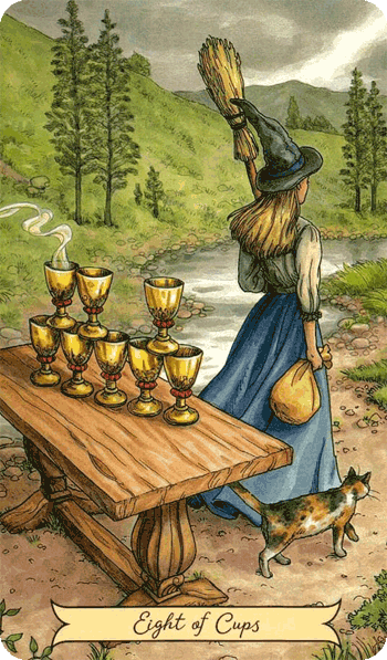 Восьмерка Кубков спрашивает вас: «Ты — дезертир, сбегающий с поля боя, или скаут, отправляющийся на поиски новой территории? Ты бросаешь то, что имеешь, потому что это трудно, или потому что это — уже не ты?»