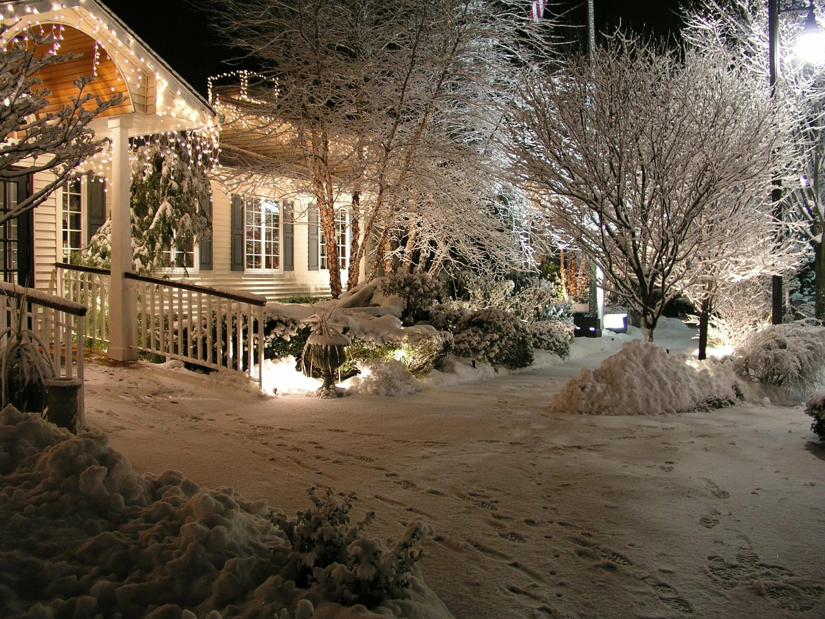 Зимний свет у дома: подсветка фасада и прилегающих зон