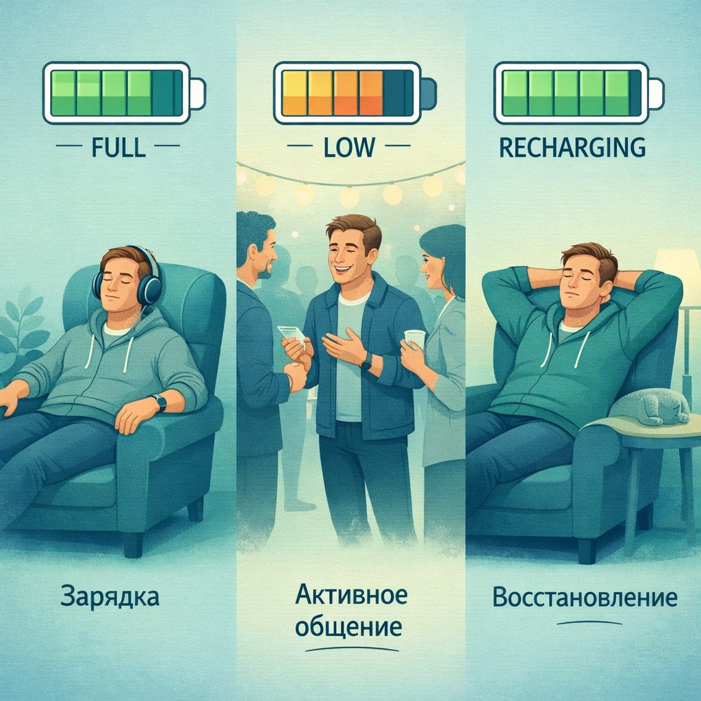 • Интроверт? Твоя энергия — глубокая, но ограниченная. Каждое взаимодействие — расход. Восполняется в одиночестве.