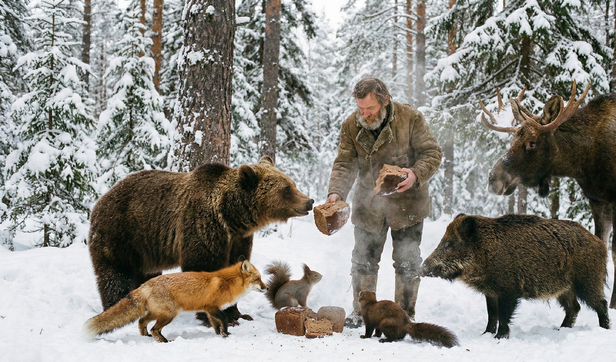 Это был Первый Каравай Зимы. По завету деда, по древнему таежному закону, который Прохор соблюдал неукоснительно все эти годы, этот хлеб был священным. Его нельзя было продавать, менять или есть людям. Его нужно было отнести в лес, положить на старый пень и оставить Хозяину — духу тайги, медведю, всему живому, что охраняет этот суровый мир. Это была плата за спокойствие, за чистую воду в роднике, за дрова, за то, что буря не срывает крышу. Жертва благодарности.