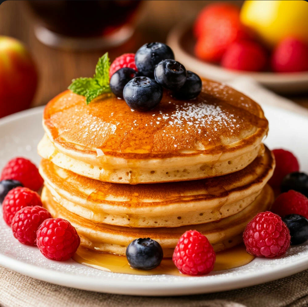 Подавайте горячими, полив свежим мёдом, вареньем, сиропом или посыпав сахарной пудрой. Можно добавить ягоды, кусочки фруктов или даже немного шариков мороженого.