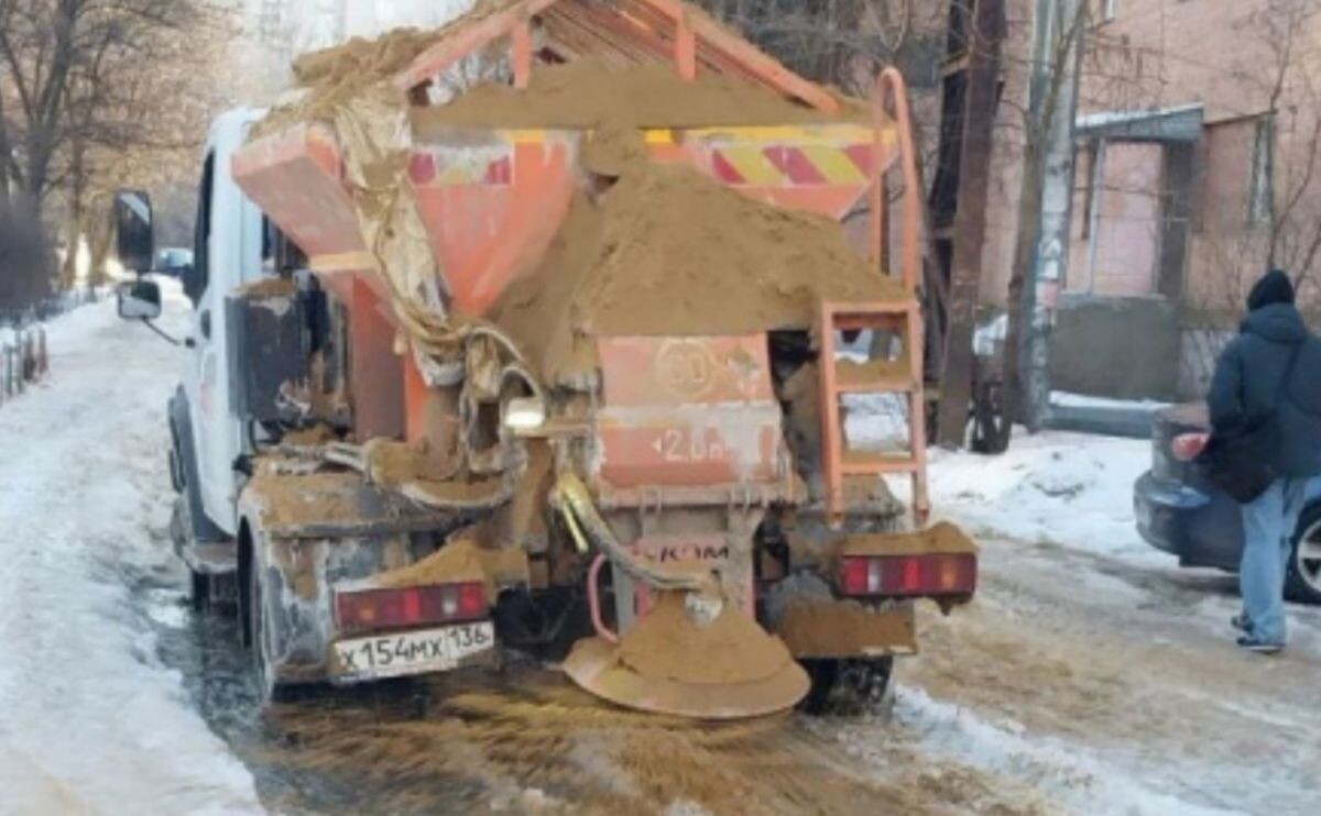 Коммунальщики вышли на борьбу с гололёдом во дворах Воронежа