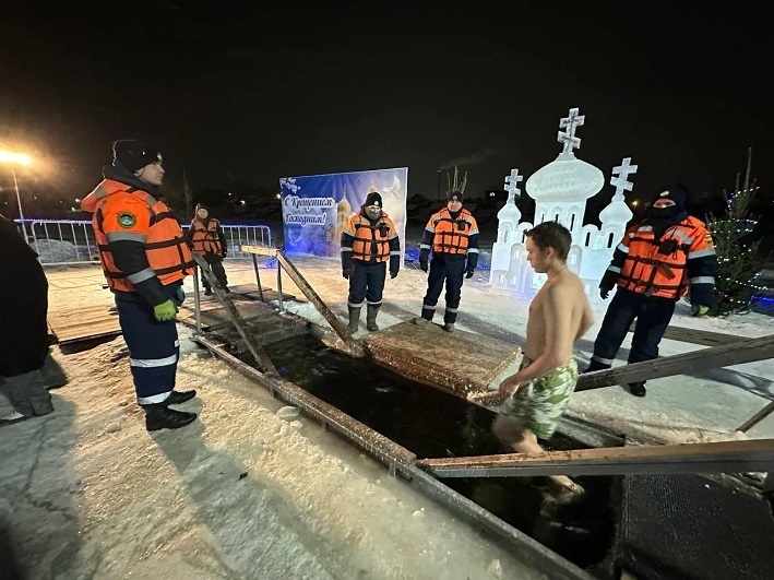 По состоянию на 00.00 часов 19 января крещенский обряд погружения в прорубь совершили более 6300 человек, сообщили в МЧС региона. Для обеспечения безопасности желающих окунуться задействованы 1114 человека личного состава и 317 единиц техники. В ведомстве еще раз призвали жителей выбирать для совершения обряда только официальные места крещенских купаний, где предусмотрено все необходимые условия: есть теплые помещения для переодевания и горячий чай, дежурят медики спасатели. Фото: МЧС РБ.