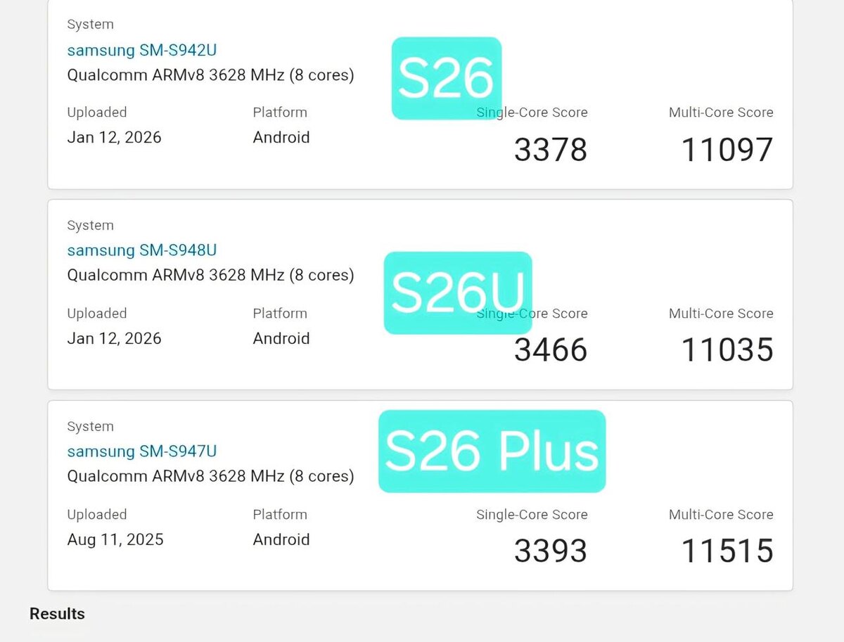 % В базе Geekbench появились результаты тестирования смартфонов серии Galaxy S26 на чипе Snapdragon. Средний прирост производительности по сравнению с предыдущим поколением составил 15%. https://dzen.ru/id/5c0e38ff46ef5c00aaa80527