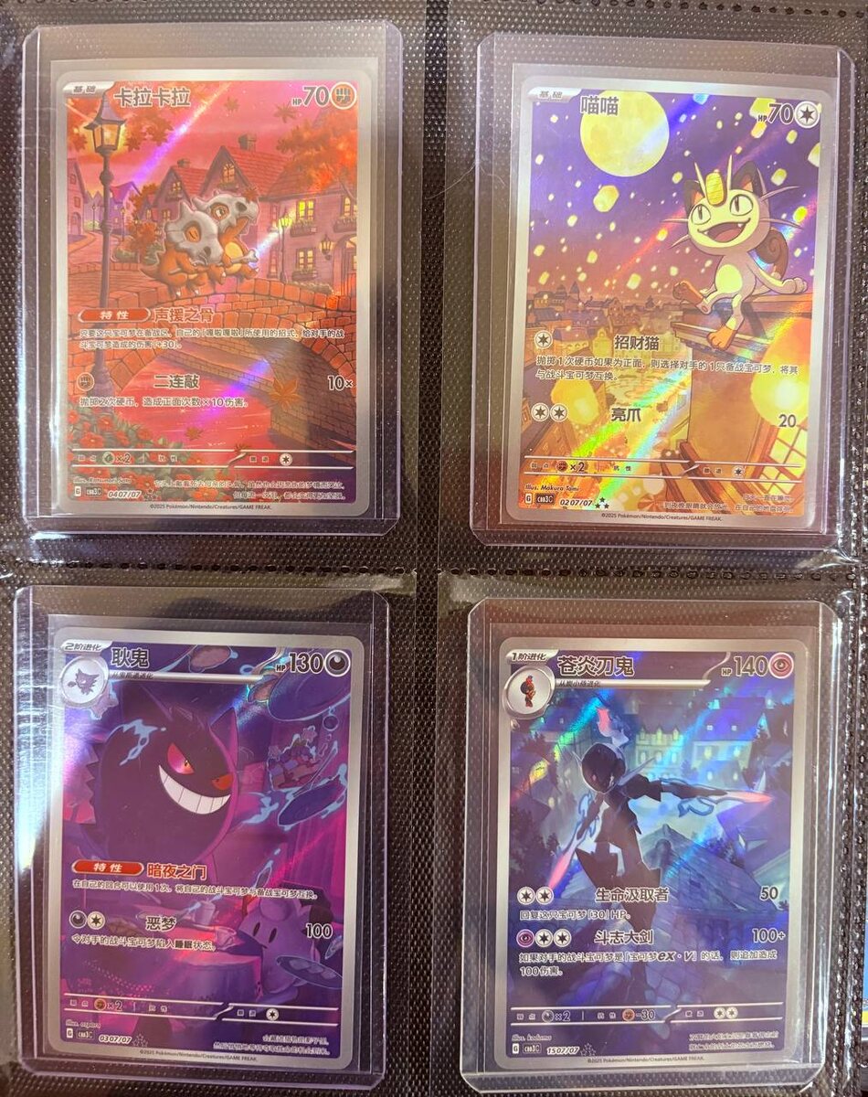 Дошли многострадальные карты из гемпака3. Столько ждать неприлично даже для девушки, а уж лошадь в линеечку… Теперь у меня сет из гемпака2 и 3. Вышел уже четвертый, но я его пропущу. Там лошадь и чувствую доставку в два раза дольше из-за этого. Но странички с картами мне нравятся. Как альбом собирается тоже нравится. Ps: расположил кубонов и мяута так как будто смотрят все на луну.