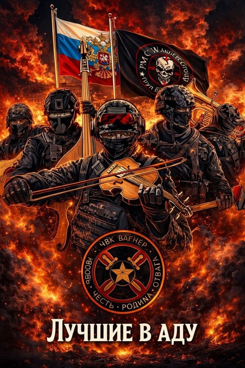 ". Когда границы стёрты, и сломлена строка, Там где не пройдут войска, путь проложат ЧВК, Через пески и бездны, где смерть ведёт игру, Лучшие в аду несут свою судьбу. На самых жарких рубежах, где плавится металл, Где каждый шаг последний, где каждый бой - финал, Они идут, как тени, сквозь пламя и свинец, Туда, где путь обычный находит свой конец. Их имена гремят, как гром средь тишины, Музыкантов знает мир по эту сторону войны, От дальних континентов до самых близких стран, Их симфония бессмертна, как вечный океан. Они творят легенды там, где кончается земля, Где пепел застилает горизонты и поля, И пусть история забудет их дела, Их честь останется священной, с Россией навсегда. В краях, где тьма сгущается и гаснет свет зари, Где выбор лишь один из двух: борись или умри, Они проходят испытанья, что не счесть, И слава их бессмертна, им воздана в ней честь.