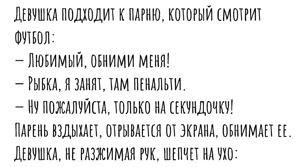 Друзья, какой из анекдотов показался вам самым жизненным? Лично мне ближе всего про "климатический контроль" — сам грешен. Пишите в комментариях свои варианты, а также истории о курьезных объятиях!