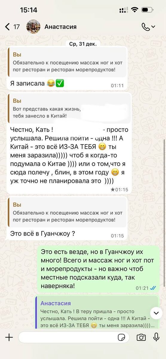 💡 Ребята, на связи Катя. Подкину-ка вам контента который меня радует, воскресенье все-таки, ну! Настя в прошлом гос.служащий довольно высокой должности, хотела кардинально поменять деятельность, иметь свободу и гибкий график и удаленную работу. Совершенно случайно приходит ко мне и… влюбляется в Китай и начинает работать в закупках! В канун этого Нового года у нее случилась поездка в Китай, джетлаг иии осознание, что вот так быстро и круто может поменяться жизнь! Вот так у нас ребята зарабатывают и строят отдельный бизнес на оказании услуг белых закупок, и даже начинают учить китайский язык, учить ему своих детей и ставят цели открыть собственный торговый дом в Китае!