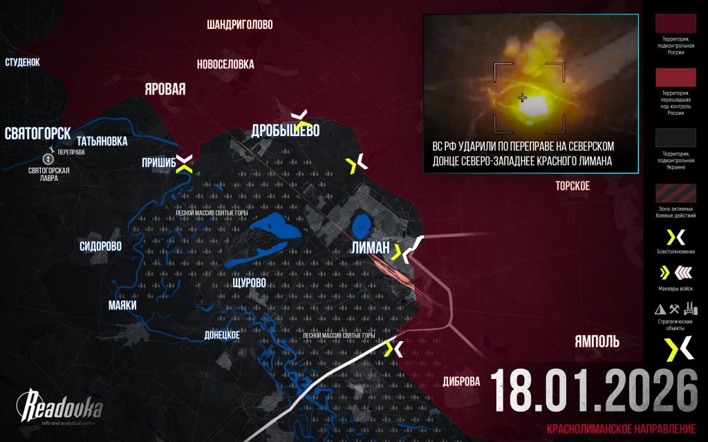 Части 25-й армии ВС РФ преодолели линию обороны ВСУ, условно проходившую от восточного берега Северского Донца у поселка Пришиб через Дробышево. Прорыв у Дробышево был лишь вопросом времени, и теперь наши войска вышли в огромный лесной массив Святые горы, опоясывающий Красный Лиман.