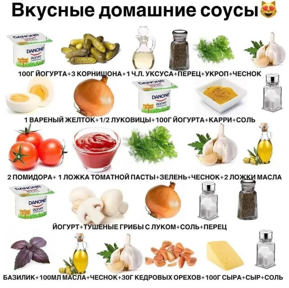 Нашла на просторах интернета - делюсь с вами. Такая удобная картинка многим может пригодиться. Состав разных соусов. У нас тоже есть комментарии в MAX.