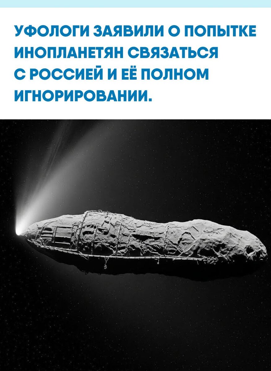 Группа независимых исследователей НЛО выступила с сенсационным заявлением. По их данным, загадочный сигнал, предположительно исходящий от первого известного межзвёздного объекта 3I/ATLAS (Оумуамуа), был направлен именно в сторону России, однако мировое научное сообщество оставило это событие без внимания. Специалисты настаивают, что собранные ими данные указывают не на случайную траекторию, а на целенаправленный и управляемый полёт объекта. «Существуют признаки искусственного происхождения сигнала и его явной адресности. Однако контакт, который мог быть реальным, попросту не был воспринят — вообще никто не отреагировал», — утверждают уфологи. Они также выдвигают гипотезу, почему это могло произойти. По их мнению, человечество, и в частности российское общество, находится в своеобразной когнитивной ловушке. Существующие научные парадигмы и консервативное мировоззрение создают «слепое пятно», мешающее принять возможность такого контакта. «Новые знания, способные в корне изменить наше по