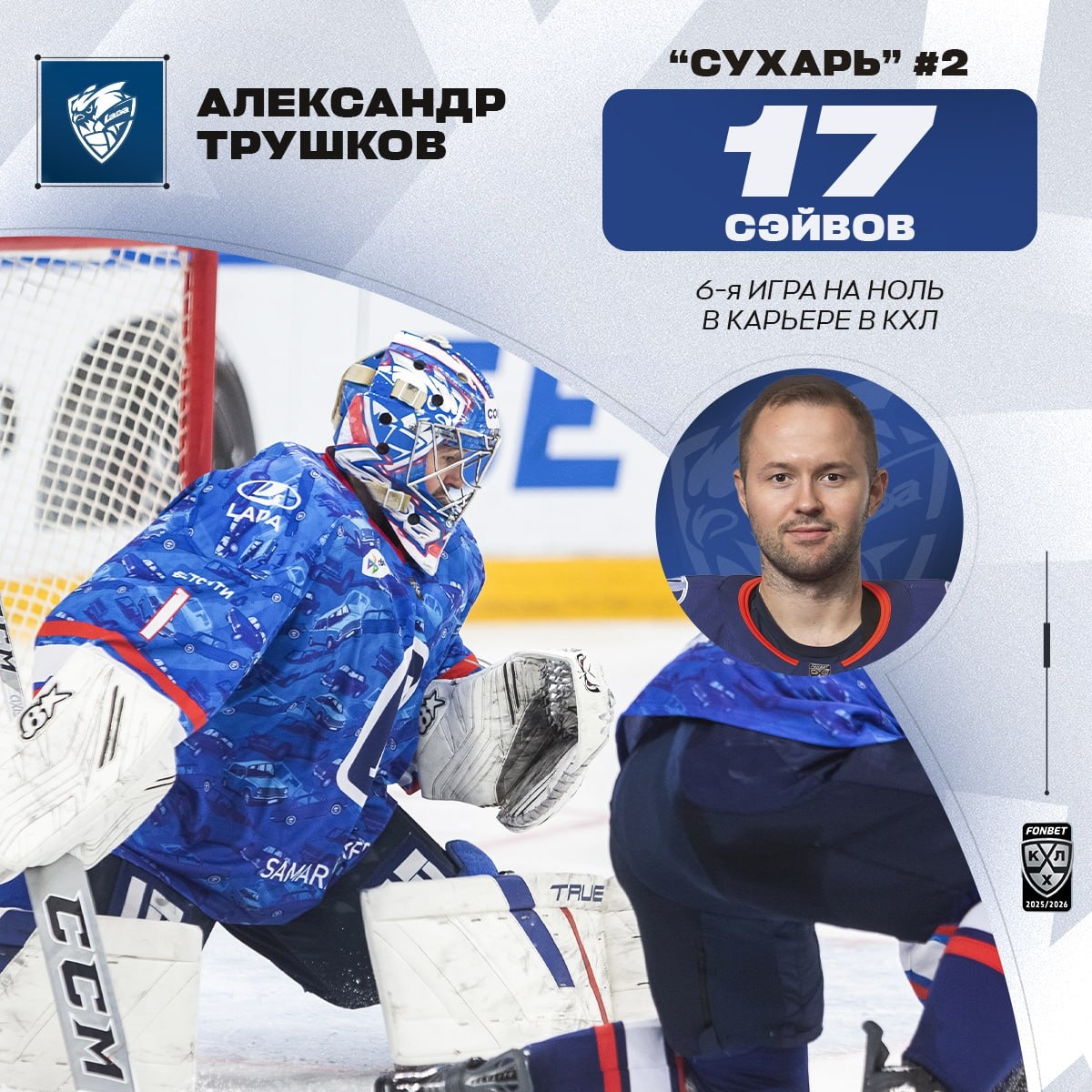Одним январским воскресным вечером Александр Трушков 🚙 обеспечил «Ладе» первую в истории «сухую» победу над ХК «Сочи»!