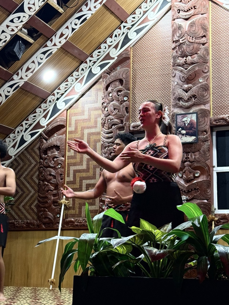 8 января. Мы ночуем в Роторуа и просыпаемся в месте, где сама земля живёт. 💨Запах сероводорода, пар над землёй, гейзеры и кипящие источники — всё напоминает, что здесь земля близко к магме. Роторуа — территория маори, народа, который изначально заселял эти земли. И сегодня у нас день природы, культурного знакомства и максимальных впечатлений. Секвойи знают как символ Америки: гигантские деревья возрастом до 400 лет. Но они растут и в Новой Зеландии. 🌳Их сюда завезли, и благодаря уникальному климату они прижились и растут стремительно. Новая Зеландия — мировой поставщик древесины, и это видно по темпам роста лесов. Парк впечатляет даже несмотря на то, что секвойи здесь ещё молодые. Если видишь впервые — эффект гарантирован. 🛶Посреди леса течёт священная река маори. Кристальная вода, густые заросли вокруг, абсолютная тишина. ❌Купаться запрещено, но наблюдение стоит каждого часа, проведённого в лесу. 40–60 минут здесь — идеальное утро💛 В Новую Зеландию животных привезли люди. 🐣А вот