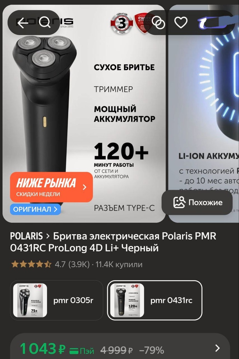 π»ΠΡΠΈΡΠ²Π° ΡΠ»Π΅ΠΊΡΡΠΈΡΠ΅ΡΠΊΠ°Ρ Polaris PMR 0431RC ProLong 4D Li+ Π§Π΅ΡΠ½ΡΠΉ - 1043Ρ (Ρ.ΠΏΡΠΉ