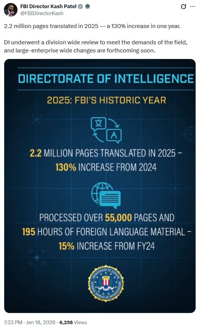FBI's Kash Patel brags about translating 2.2MN pages in 2025