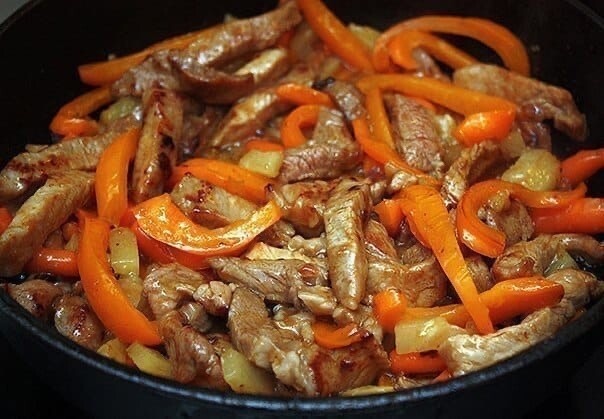 1. Мяско тоненько режем. Перчик режем кто как любит.