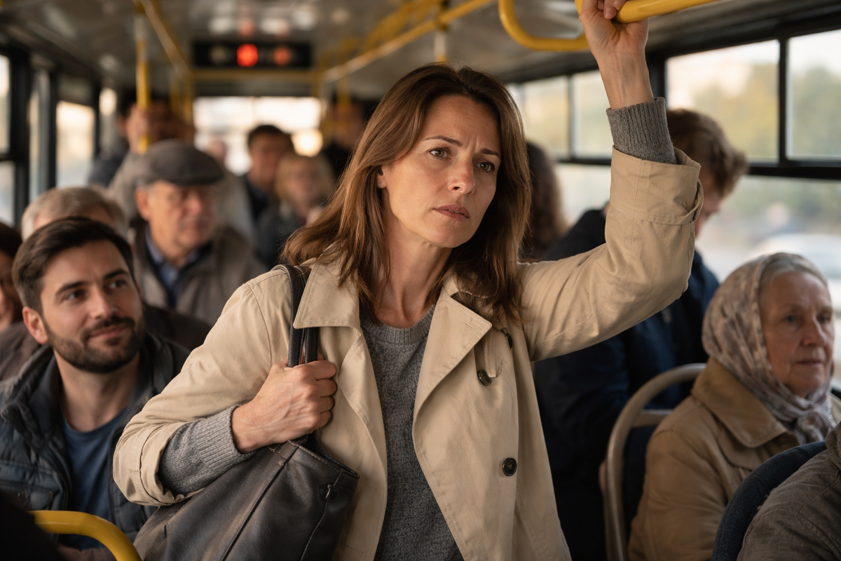 Мне 43. Я не считаю себя старой, но и юной девочкой давно не выгляжу. После восьми часов на ногах спина ноет, колени напоминают о себе, и стоять в тряске уже не так просто. Когда на одной из остановок зашли пожилые люди, я машинально посмотрела на свободные места. Их не было.