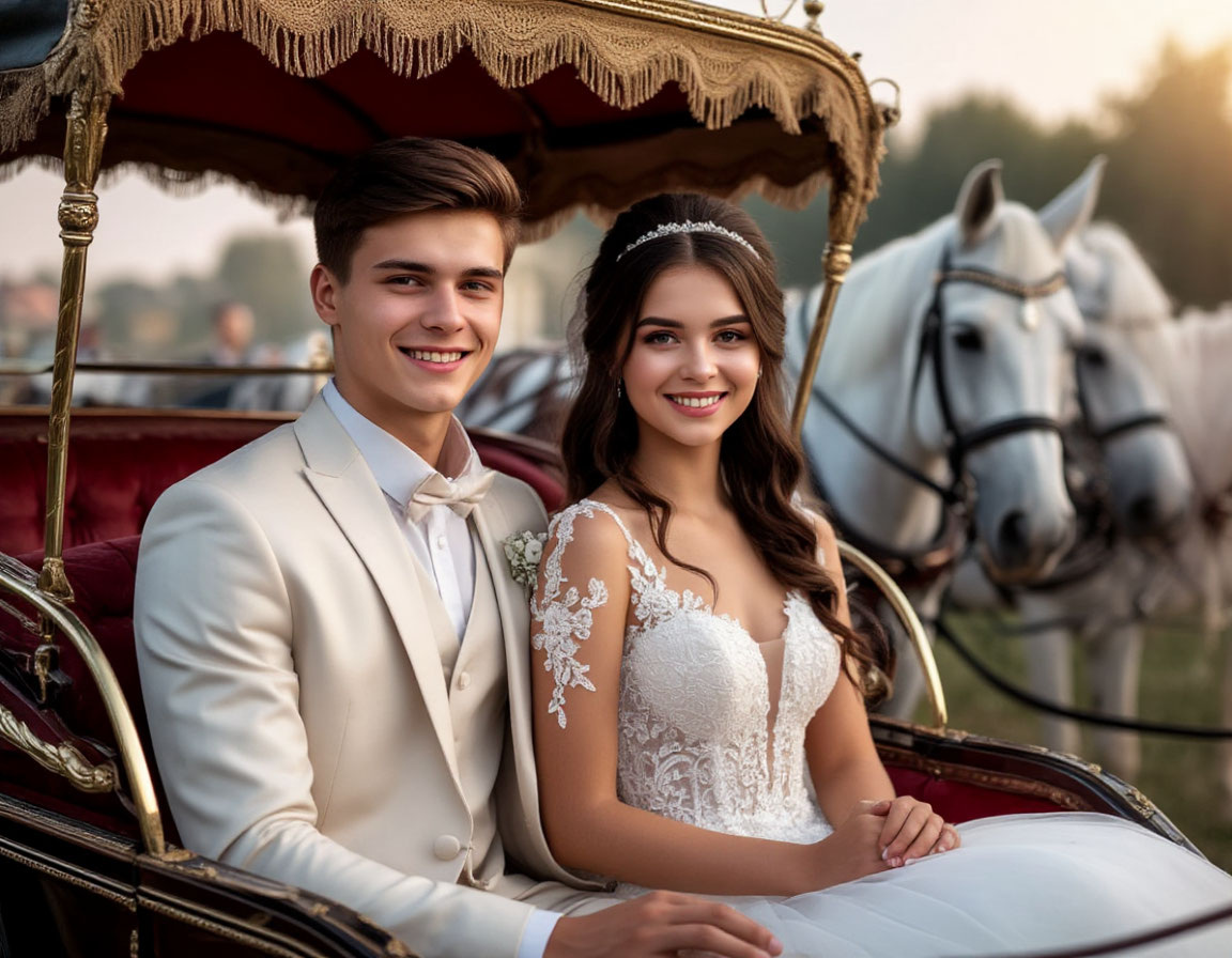 ИИ : Катя вышла в свадебном платье, и я замер от её красоты. «Ты потрясающе выглядишь!»Она лукаво улыбнулась. Мы спустились, где вместо лимузина её ждал сюрприз — два конных экипажа.«Вау! Ты запомнил!» — вскричала Катя, бросаясь мне на шею. Сашка и Аня завизжали от восторга.