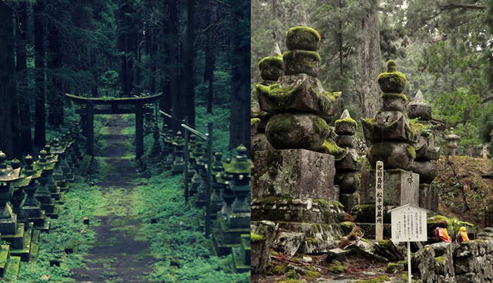 На уединённом горном склоне Кобо-Дайши возвёл скромное святилище, предназначенное для духовных практик и размышлений. Буддийские последователи убеждены, что основатель не покинул этот мир, а находится в непрерывном медитативном трансе. Дважды в сутки – на рассвете и с наступлением сумерек – служители совершают церемонию подношения ритуальной пищи к его усыпальнице. В самом сердце некрополя Окуноин, среди вековых кедровых деревьев и покрытых мхом каменных памятников, находится место упокоения Кобо-Дайши. Основатель и вообразить не мог, какое будущее ждёт его маленькое строение: вокруг него со временем появилось свыше ста религиозных построек и обителей, а затем сформировалось целое селение Коясан.
