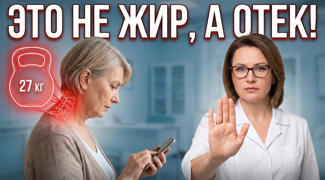 Жизнь: Чтобы позвонки не сломались под этой тяжестью, организм начинает срочно укреплять это место, наращивая соединительную ткань и жир. Это «цемент», который держит вашу падающую голову.