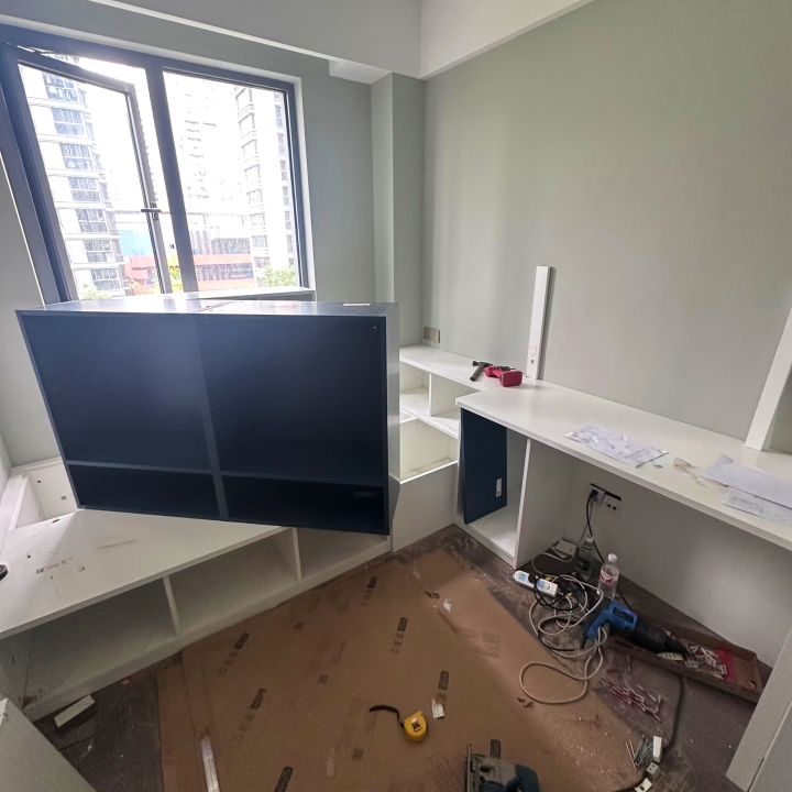- Вариант без строительных работ: шкаф с фальш-панелью, имитирующей встроенность. Визуально — единая плоскость со стеной, на деле — обычная корпусная мебель, но без «выпирающих» боковин.