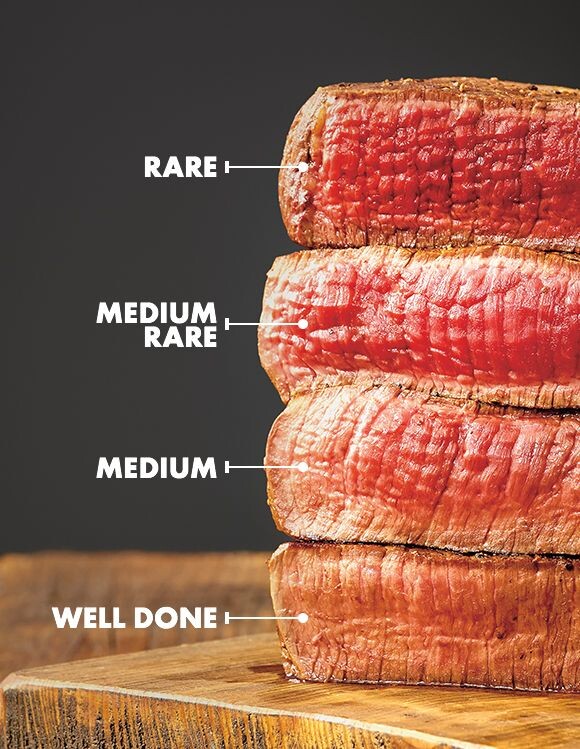 Сердцевинная температура куска — объективный показатель. Для ее измерения профессионалы используют кулинарные термометры. На практике часто применяют тактильный тест: упругость мяса сравнивают с ощущением при нажатии на разные части расслабленной ладони. Этот навык приходит с опытом и позволяет точно контролировать результат. Условно весь спектр можно разделить на несколько ключевых стадий, каждая из которых дает уникальный результат. Поиск своего фаворита — увлекательный гастрономический опыт. Лучший совет: не бойтесь экспериментировать, пробуя разные варианты. А чтобы исследование было комфортным, доверьтесь профессионалам, которые могут подробно рассказать об особенностях каждого блюда и помочь вам найти именно то, что придется по вкусу. А выбрать стейк можно на нашем сайте