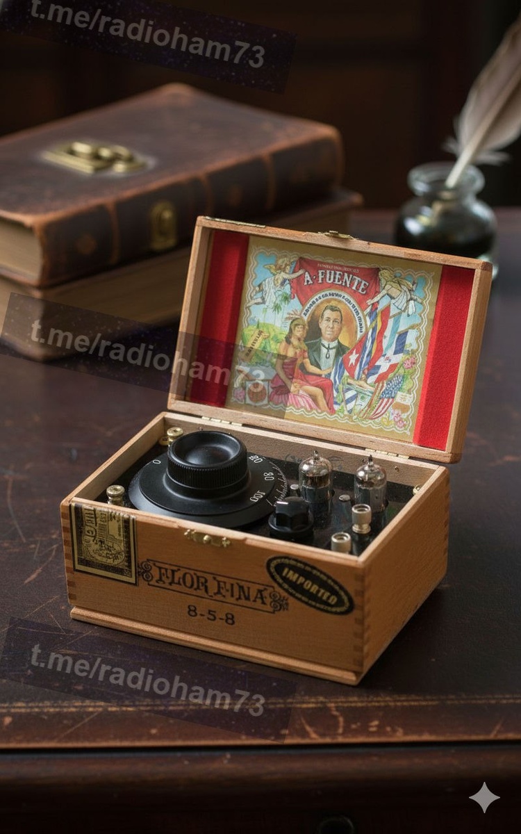 Π»Π°ΠΌΠΏΠΎΠ²ΡΠΉ ΡΠ΅Π³Π΅Π½Π΅ΡΠ°ΡΠΈΠ²Π½ΡΠΉ ΠΏΡΠΈΠ΅ΠΌΠ½ΠΈΠΊ, Π°ΠΊΠΊΡΡΠ°ΡΠ½ΠΎ ΡΠΏΡΡΡΠ°Π½Π½ΡΠΉ Π²Π½ΡΡΡΠΈ Π²ΠΈΠ½ΡΠ°ΠΆΠ½ΠΎΠΉ ΡΠΈΠ³Π°ΡΠ½ΠΎΠΉ ΠΊΠΎΡΠΎΠ±ΠΊΠΈ Arturo Fuente. ΠΠ»Ρ ΡΠ΅Ρ