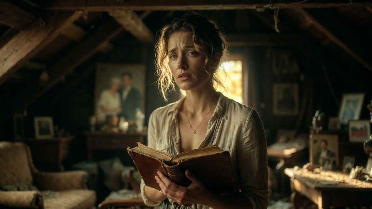 Чердак нашего старого дома пахнет временем. Не пылью, а именно временем — сухим, сладковатым, с примесью прошлогодних яблок и старого дерева. Мы перебирали вещи после похорон бабушки. Мама рыдала внизу, разбирая сервиз, а я, чтобы не слышать этих сдавленных всхлипов, полезла наверх. Туда, где хранилась история.