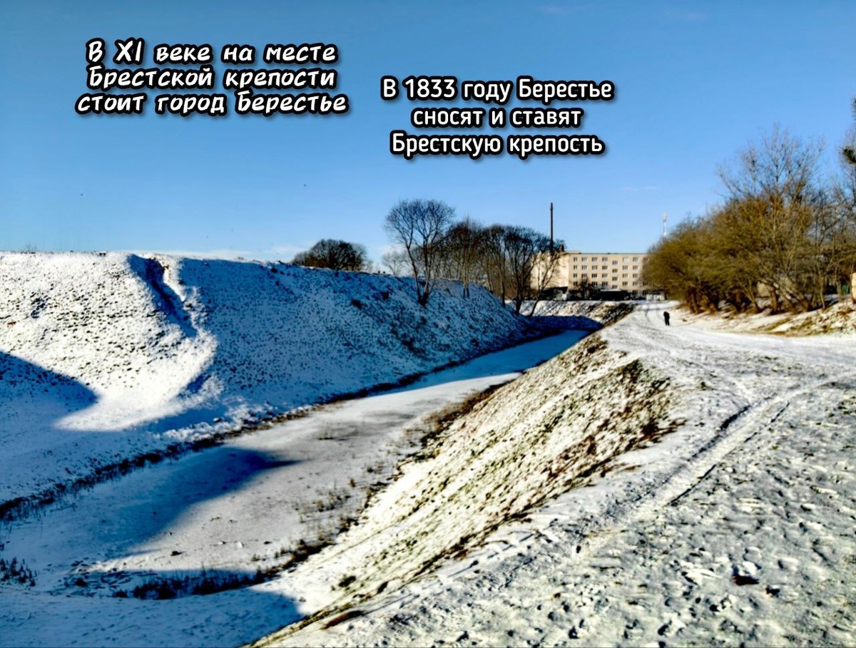 🛖 В XI веке на месте Брестской крепости стоит город Берестье 🧱 В 1833 году Берестье сносят и ставят Брестскую крепость Почему это сделали? В XIX веке войны шли вдоль дорог. Свернуть с мощёного пути было нельзя. Колёса пушек и обозы мгновенно увязали в грязи. Перекрыть такую дорогу крепостью означало наглухо запереть путь для врага. Так и поступил Николай I, чтобы сдерживать мятежи. Крепость стала инженерным чудом своего времени. Чтобы её взять, нужно было: ➡️ Переплыть ров с ледяной водой и заострёнными лезвиями на дне. ➡️ Затем, обессилев, взобраться на высокий вал. 🛬 Но в XX веке правила игры изменились. Орудия стали стрелять на 50 км. Самолёты стали сбрасывать бомбы точно на цель. В каком-то смысле поэтому и произошёл трагичный бой в Брестской крепости в июне 1941 года. А что сегодня? Этой зимой в Брестскую крепость приезжали дети кататься на тюбингах с горок. И некоторые выбрали весьма странное место: ту самую горку в ров, где была ледяная вода и лезвия. Ров, о которо
