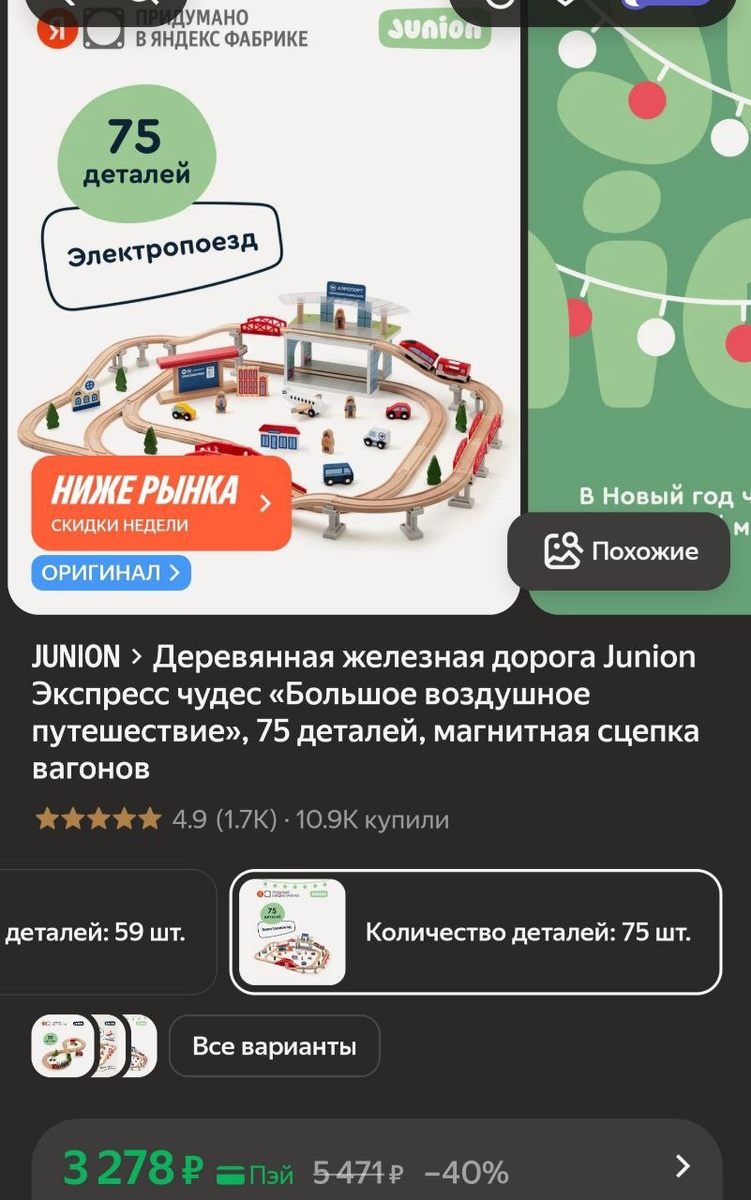 💻Деревянная железная дорога Junion Экспресс чудес «Большое воздушное путешествие», 75 деталей, магнитная сцепка вагонов - 3278р (я.пэй)
