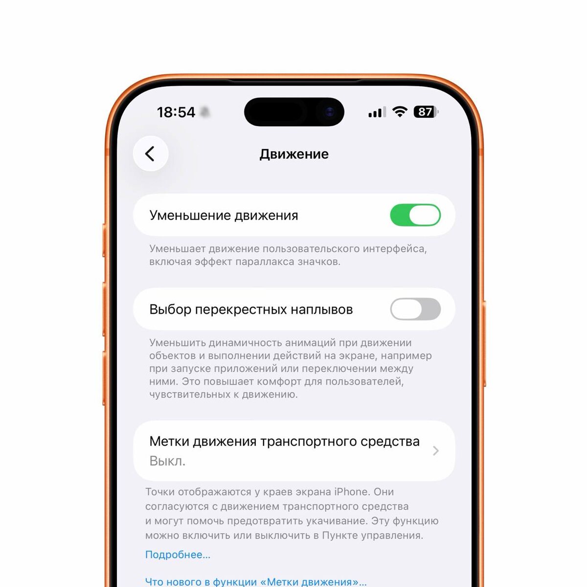 ➡️Причина недовольства на новых айфонах. Настройка «Уменьшение движения» – отключает параллакс и 3D-эффекты – упрощает анимации переходов – убирает «живые» слои в интерфейсе – снижает нагрузку на GPU В реальности это плюс 3–7% к автономности за день, но если вам нужно менять аккумулятор, а возможности нет, это выход. Главное! Выключите когда перейдете на новый айфон. Несколько подписчиков жаловались что их новые iPhone 17 работали медленнее чем убитые айфон 12. Оказалось они перенесли всё, включая настройки. Убрали «Ограничение движения» и по их словам «Залетало». На деле, анимации дали ощущение скорости и плавности.
