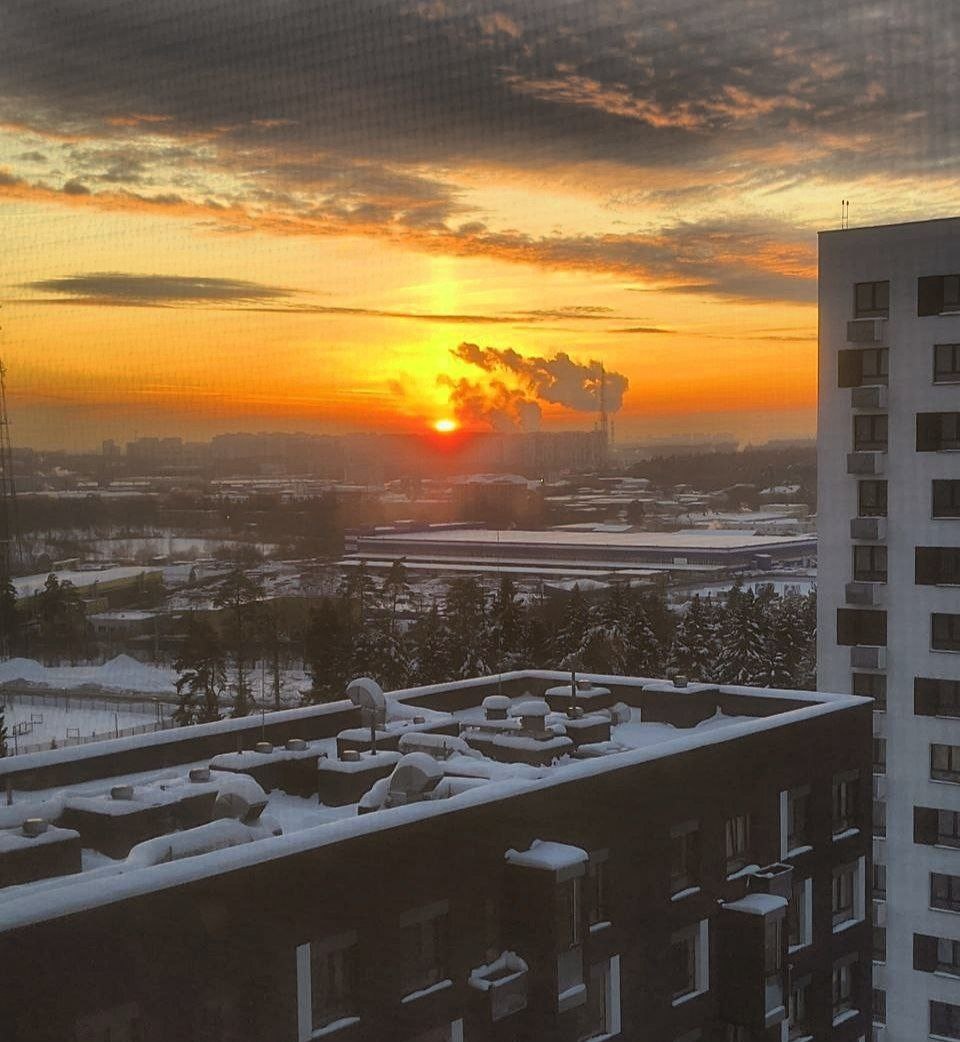 ☝️ Зимний морозный закат из окна в ЖК Мытищи Парк.