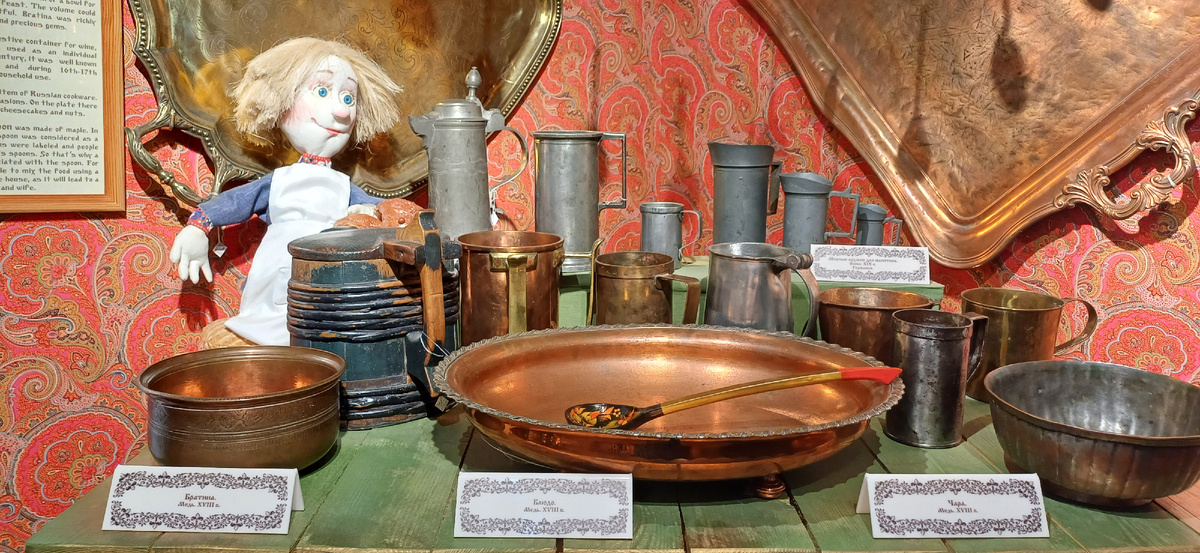 Еще в музее можно увидеть коллекцию старинной русской посуды и узнать, как раньше назывались некоторые предметы быта, из чего их изготавливали и для чего применяли, например:
