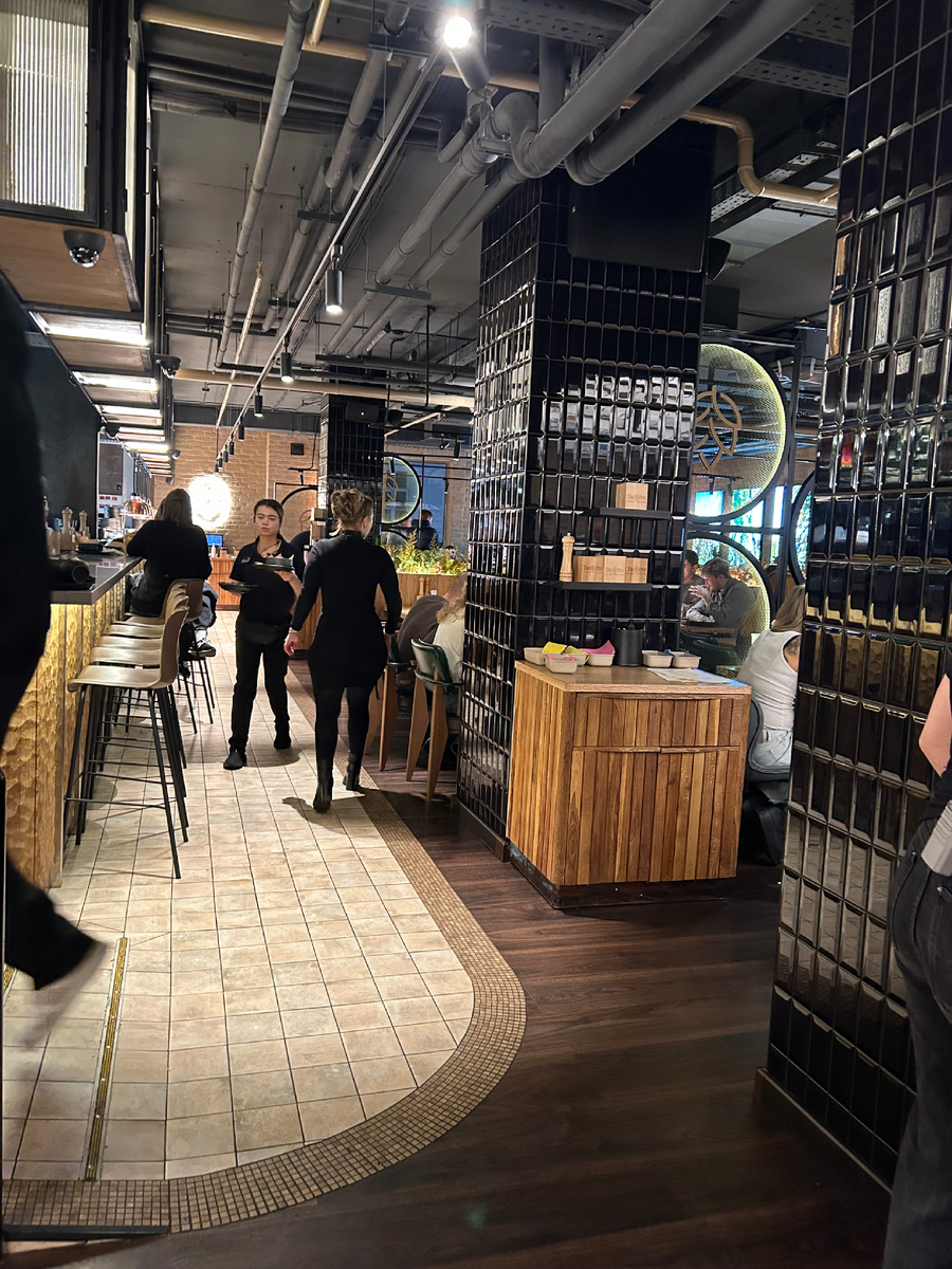 Собрались совсем в другую сеть ресторан но судьба сложилась так что попали именно сюда) А в этом ресторане можно через приложение встать в электронную очередь ☝️ которая очень быстро двигается🎃За оперативность 4 звезды поставила, а сама еда так посредственная так утолить голод или закусить пиво, посетителей очень много дают 1,5-2 часа . Порции маленькие , некоторые .блюда очень острые, цены приемлемые 250-300 зависят от времени дня и суток. Ели ребрышки очень острые оценилина 3,салат с баклажанами так себе оценилина 3-,салат кальмарами так себе а пиво не испортишь😜