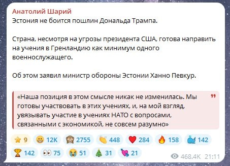 ?". Вам, граждане эуропэйцы, не кажется, что изначальная постановка вопроса "Одна страна - один голос" была нежизнеспособной? Правда, сейчас вопрос стоит так, что Германия, былой Гегемон Европы, направила в енту самую Гренландию 13 (прописью, тринадцать штук) гренадеров. А через день эти тевтонские рыцари оттедова благополучно сдернули. Ссыкотно, донер веттер! Просрали. Вы просрали всё. Не Гренландию, хрен-то бы с ней. Вы всё просрали. Завтра у вас Канаду отымут. Потому как она исторически должна принадлежать Амэрике. А послезавтра Гибралтар отметут, мотивируя тем, что он абсолютно важен для защиты Штатов от экспансии Китая. А потом рыжий Донни приедет в Лондон (в Лондон, да!) и навалит кучу перед дверью на Даунинг стрит 10. А вы будете заискивающе улыбаться и обсуждать её художественные достоинства. А виноват во всём, разумеется, Темнейший! 🐶 Подпишись на Шарика! Гав!