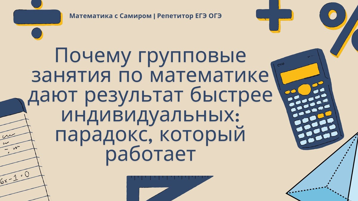 Когда речь заходит о репетиторе по математике, первая ассоциация — это индивидуальные занятия. Кажется очевидным: всё внимание учителя — одному ученику, программа подстроена под его темп, никаких отвлекающих факторов. Как репетитор, практикующий оба формата, я готов поспорить с этой аксиомой. В определённых условиях — а именно, при подготовке к экзаменам и системном устранении пробелов — качественные групповые занятия (3-6 человек) могут дать более быстрый и устойчивый результат. И вот почему это не миф, а психолого-педагогическая закономерность.
