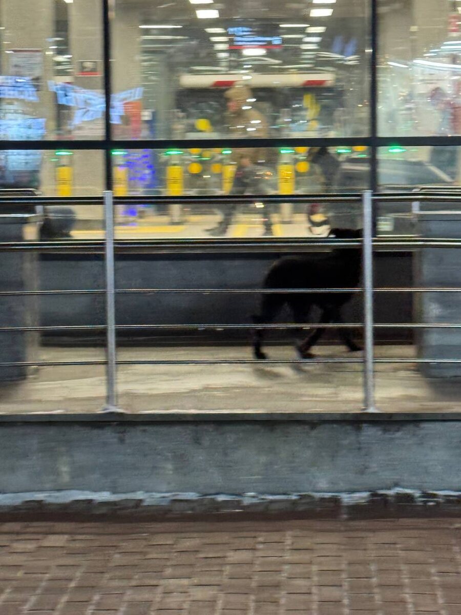 МЦД Подольск бегает черный щенок, пытается зайти в вокзал, чтобы погреться
