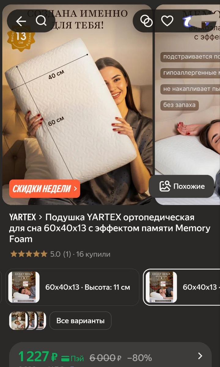 π»ΠΠΎΠ΄ΡΡΠΊΠ° YARTEX ΠΎΡΡΠΎΠΏΠ΅Π΄ΠΈΡΠ΅ΡΠΊΠ°Ρ Π΄Π»Ρ ΡΠ½Π° 60Ρ 40Ρ 13 Ρ ΡΡΡΠ΅ΠΊΡΠΎΠΌ ΠΏΠ°ΠΌΡΡΠΈ Memory Foam - 1227Ρ (Ρ.ΠΏΡΠΉ