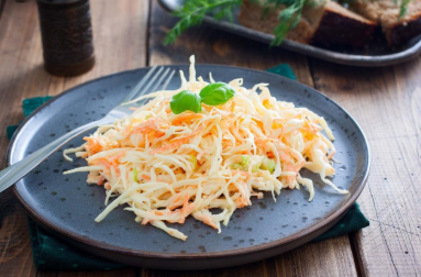 Витаминный, простой, но очень вкусный. На скорую руку. Для салата Коул слоу классического потребуется минимальный набор доступных продуктов. Главное его отличие от других подобных блюд - это заправка, делающая его очень аппетитным и сочным. Для салата: Капуста белокочанная 300 гр Морковь 200 гр Стебель сельдерея по вкусу Для соуса: Сметана 3 гр чайн.л.стол.л.десерт.л. Майонез 2 гр стак.чайн.л.стол.л.десерт.л. Горчица 1 гр чайн.л.стол.л.десерт.л. Соль 0.25 гр.чайн.л.стол.л.десерт.л. Перец черный молотый по вкусу Сахар (по вкусу) 2 ложки