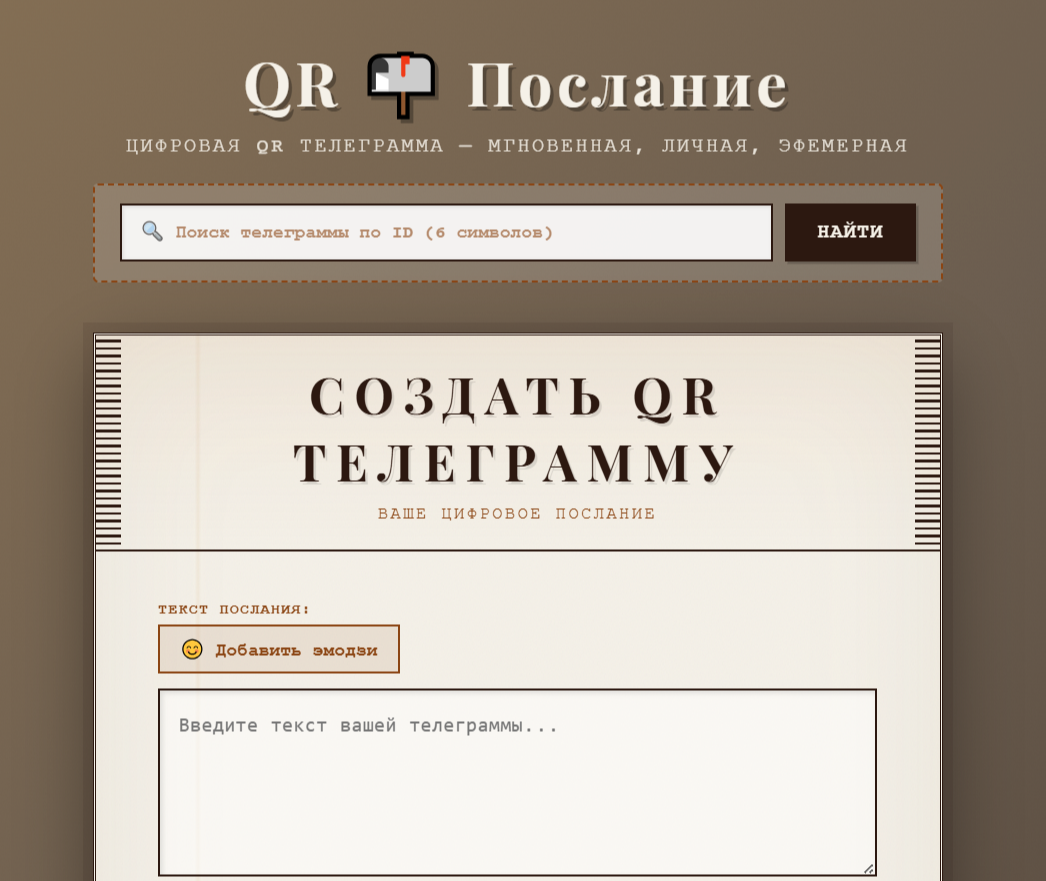 Каждому знакома ситуация: вы написали сообщение = а ответа нет. Ни прочтения, ни ответа. Что делать в этом случае? 🤔 Когда человек не отвечает, это не всегда про вас лично. Иногда человек занят, отключил уведомления или не видит ваше сообщение. Сохраните спокойствие и не «бомбите» её новыми текстами - это может испугать или раздражать. Если обычные сообщения не работают, можно попробовать нестандартный способ - QR-послание. Это креативный способ отправить сообщение в виде QR-кода: человек "сканирует" его и получает ваше послание. Такой формат может выглядеть необычно и привлечь внимание человека - особенно если стандартные сообщения игнорируются. Существует сервис Вам-телеграмма (вам-телеграмма.рф), где можно бесплатно создать такую QR-телеграмму без регистрации и сложных настроек - просто напишите текст, получите QR-код и отправьте его адресату. Когда она просканирует QR-код камерой телефона, увидит ваше сообщение. Информация о просмотре будет видна вам. ✔ Такой формат не похож на об