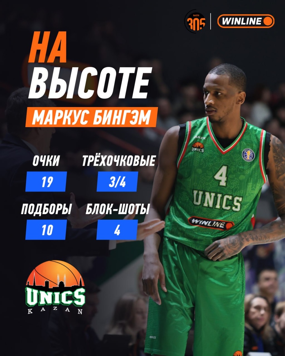 Сумасшедшие цифры от Бингэма: дабл-дабл с подборами, 75% из-за дуги, 4 блок-шота 😱