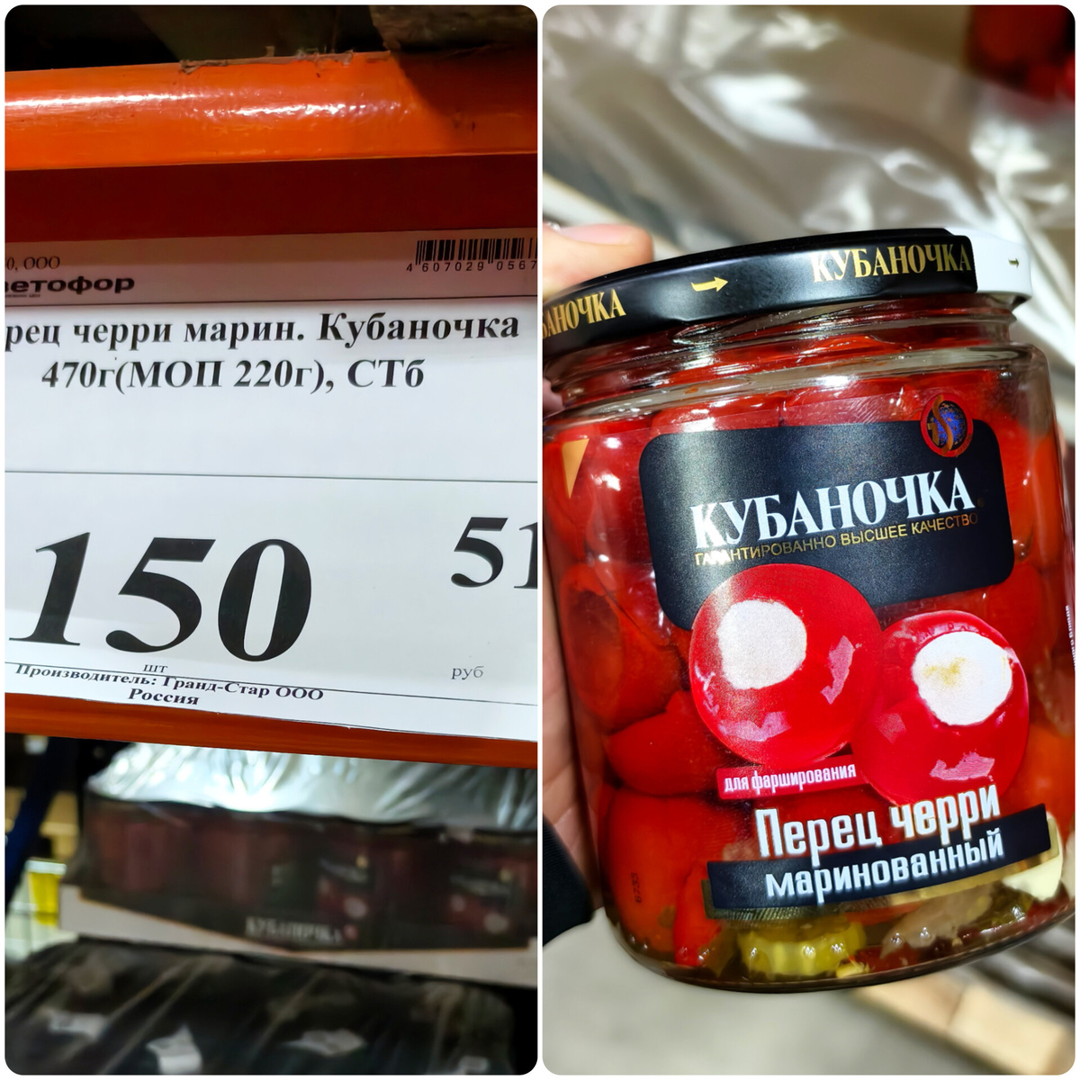 Ещё перед Новым годом я покупал такие перчики для фарширования от Кубаночки в Светофоре. Так сказать для будущих заготовок. Цена 150 рублей, кажется недорого.